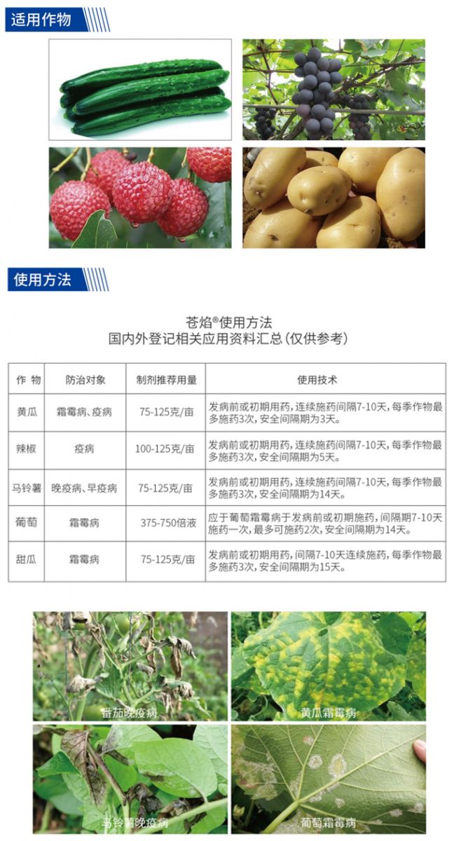 Disease Prevention & Yield Increase: Cangyan® can not only effectively prevent diseases caused by lower fungi such as downy mildew and late blight, but also enhance the photosynthesis of crops, thereby increasing yield and income.