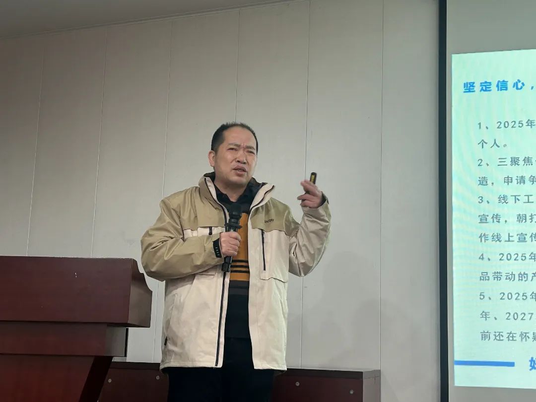 深泰化工制剂销售副总詹世河在会议上进行了激昂的动员,为 2025 年的销售工作指明方向。他强调,2025 年我们要坚定信心,全力以赴超额实现销售目标。
